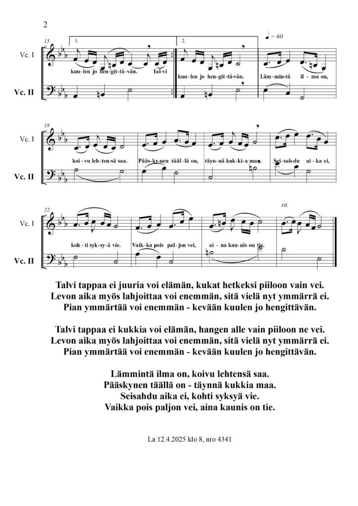 Kevään kuulen jo hengittävän