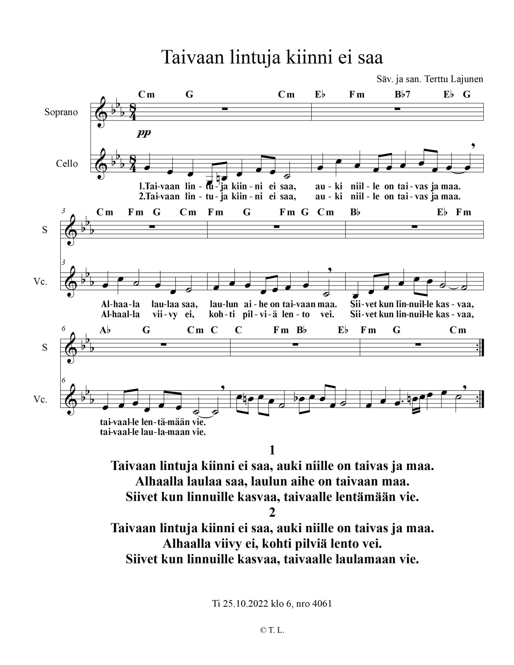 Ti 25.10.2022 klo 6 nro 4061 https://www.laululintu.net/wp-content/uploads/2022/10/Taivaan-lintuja-kiinni-ei-saa.mp3