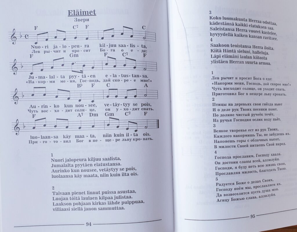 Suurenmoinen Psalmi 104 tuli tänään vastaan ikiomassa lukuohjelmassani, ja siitä palautui mieleen kauan sitten syntynyt laulu Eläimet. Äänite lauletaan venäjäksi ja se alkaa vähän kuin leijonan kiljunnalla. Muukin äänimaailma on aihepiirin mukaista.